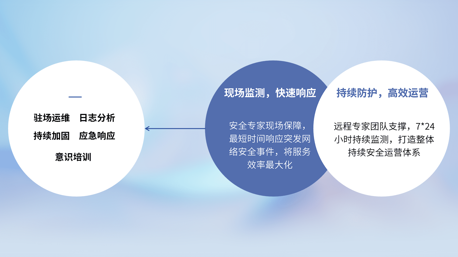 针对客户行业特性,,,,提供专属的一站式安全管理服务,,,帮助客户全面感知网络空间威胁,,,,通过安全专家的线上、、、线下防护支持,,实现风险闭环,,将安全保障常态化,,为客户打造常态化安全运维运营服务。。。